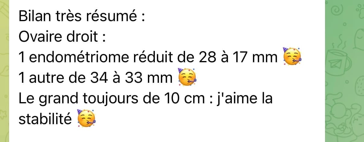 Octobre 2025, ma gynéco m'annonce que je suis guérie, que je n'ai plus aucune trace de mon endométriose... Je pleure... J'ai réussi !!!!