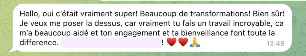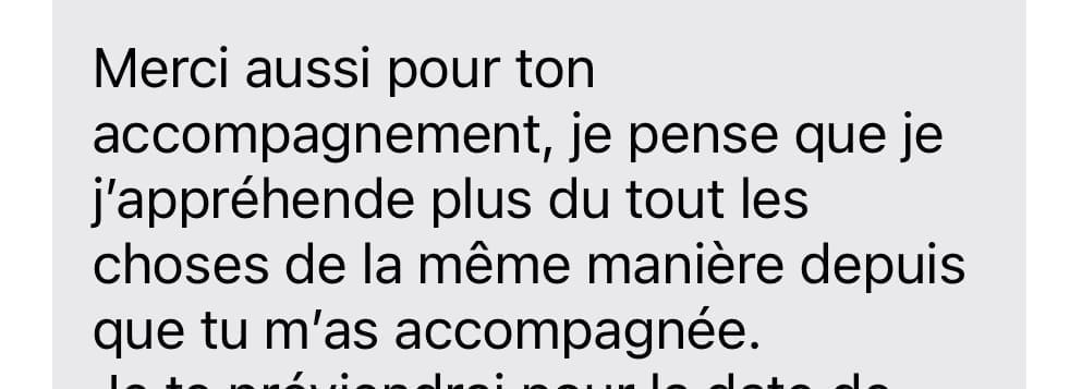 Les mois sont passés à une vitesse folle ! Merci pour tout le temps que tu nous as accordé, ton écoute, ta bienveillance ! J'ai trouvé les informations communiquées très pertinentes à chaque fois. J'ai appris beaucoup et il y a eu de beaux déclics !