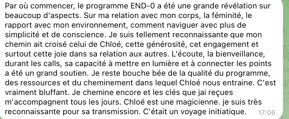 Aujourd'hui, je suis prête à t'aider toi aussi et à te transmettre mon voyage vers la guérison avec le programme END-0